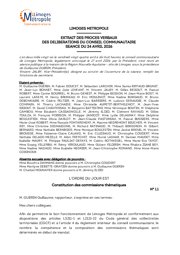 Retrouvez les délibérations, décisions et arrêtés pris dans le cadre des instances et de la gestion de Limoges Métropole