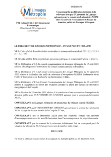 Décision concernant la modification tarifaire de la redevance due par l'Université de Limoges agissant pour le compte du Laboratoire XLIM dans le cadre de l'occupation de locaux du domaine public de Limoges Métropole - ESTER