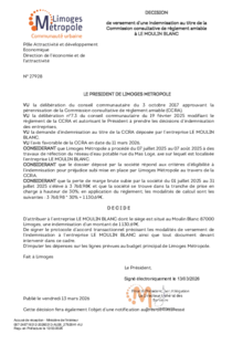 DécisionDécision de versement d'une indemnisation au titre de la Commission Consultative de Règlement Amiable à LE MOULIN BLANC1 documentPublié le 13 Mars 2026 27928.pdf (.pdf, 236,2 Ko) Télécharger PrécédentRetour à la listeSuivant