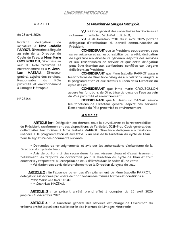 Retrouvez les délibérations, décisions et arrêtés pris dans le cadre des instances et de la gestion de Limoges Métropole