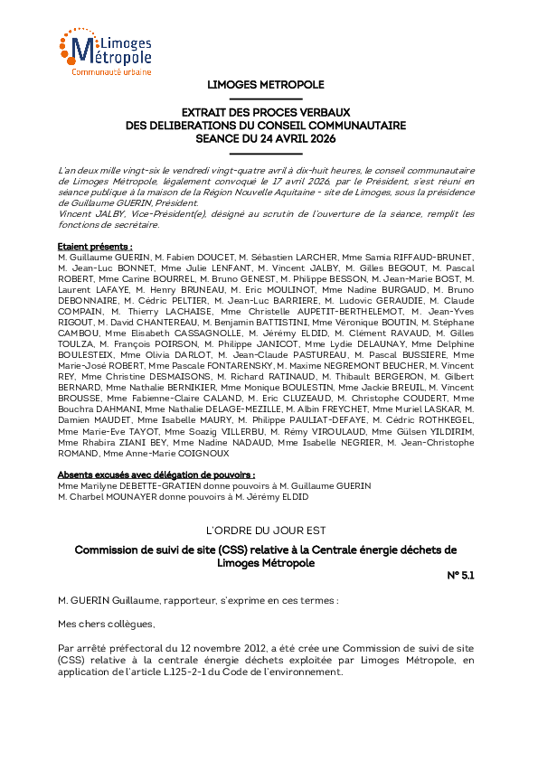Retrouvez les délibérations, décisions et arrêtés pris dans le cadre des instances et de la gestion de Limoges Métropole