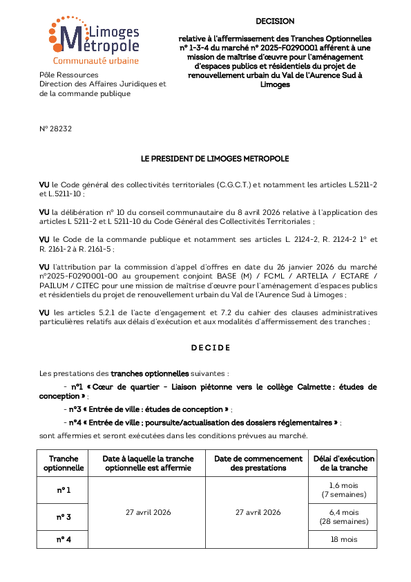 Les délibérations, décisions et arrêtés pris dans le cadre des instances et de la gestion de Limoges Métropole sont publiés sur la page "Documents des instances communautaires".