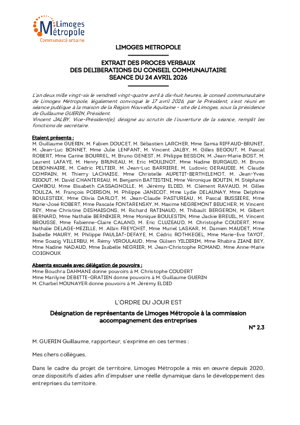 Retrouvez les délibérations, décisions et arrêtés pris dans le cadre des instances et de la gestion de Limoges Métropole