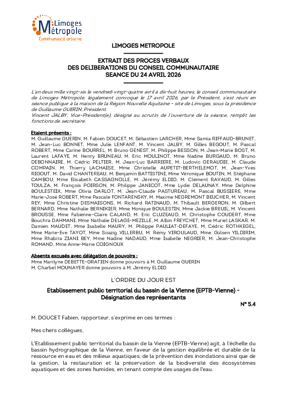 Retrouvez les délibérations, décisions et arrêtés pris dans le cadre des instances et de la gestion de Limoges Métropole
