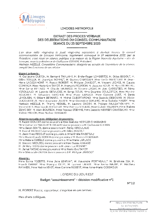 DélibérationBudget "assainissement" - décision modificative n°11 documentPublié le 2 Octobre 2025 Délibération du 25 septembre 2025 1_2.pdf (.pdf, 5,4 Mo) Télécharger PrécédentRetour à la listeSuivant