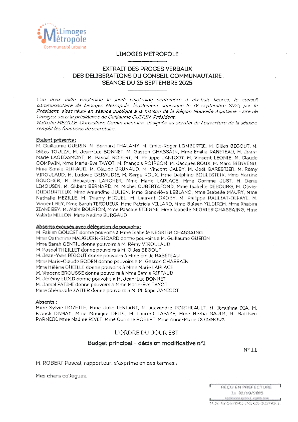 DélibérationBudget principal - décision modificative n°11 documentPublié le 2 Octobre 2025 Délibération du 25 septembre 2025 1_1.pdf (.pdf, 8,1 Mo) Télécharger PrécédentRetour à la listeSuivant