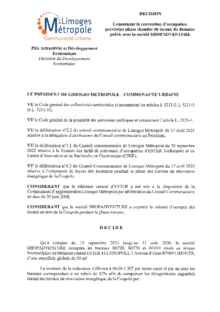 DécisionDécision concernant la convention d’occupation provisoire phase chantier de locaux du domaine public avec la société SHOPADVENTURE1 documentPublié le 1 Octobre 2025 27269.pdf (.pdf, 1,0 Mo) Télécharger PrécédentRetour à la listeSuivant