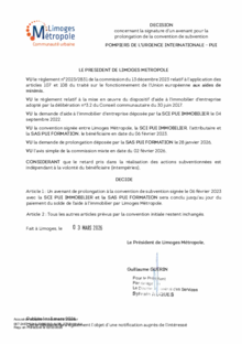 DécisionDécision concernant la signature d'un avenant pour la prolongation de la convention de subvention POMPIERS DE L'URGENCE INTERNATIONALE1 documentPublié le 3 Mars 2026 27921.pdf (.pdf, 74,5 Ko) Télécharger PrécédentRetour à la listeSuivant