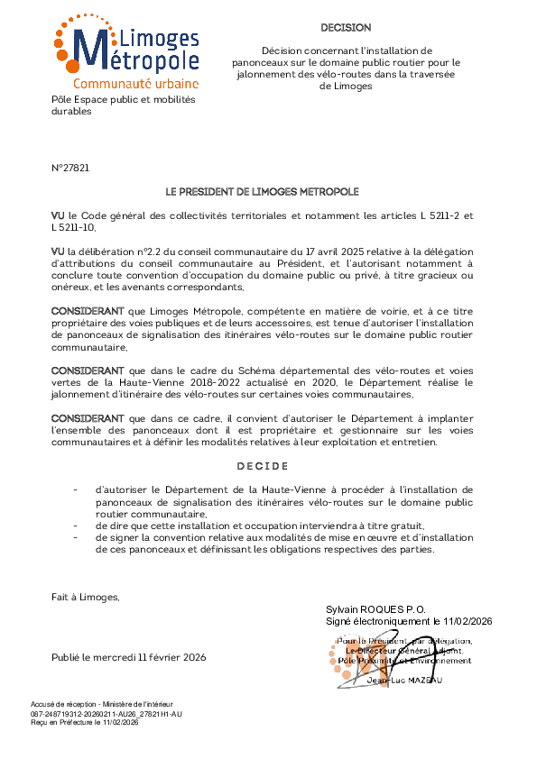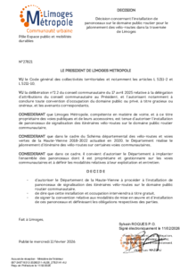 DécisionDécision concernant l'installation de panonceaux sur le domaine public routier pour le jalonnement des vélo-routes dans la traversée de Limoges1 documentPublié le 11 Février 2026 27821.pdf (.pdf, 215,9 Ko) Télécharger PrécédentRetour à la listeSuivant