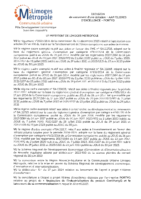 DécisionDécision de versement d'une dotation AAP FILIERES D EXCELLENCE - PORTYQ1 documentPublié le 2 Octobre 2025 27286.pdf (.pdf, 266,0 Ko) Télécharger PrécédentRetour à la listeSuivant