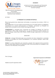 DécisionDécision portant sur la mise à disposition de l'Université de Limoges de l'outil de sensibilisation à la transition hydrique1 documentPublié le 29 Septembre 2025 27245.pdf (.pdf, 366,3 Ko) Télécharger PrécédentRetour à la listeSuivant