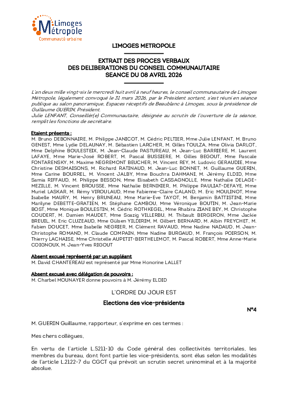 Délibération du 8 avril 2026