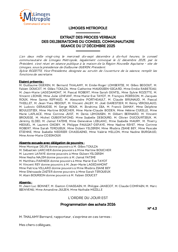 DécisionProgrammation des achats 20261 documentPublié le 23 Décembre 2025 Délibération du 17 décembre 2025 4_3.pdf (.pdf, 520,2 Ko) Télécharger PrécédentRetour à la listeSuivant