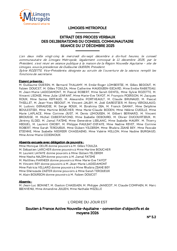 DélibérationSoutien à France Active Nouvelle-Aquitaine - convention d'objectifs et de moyens 20261 documentPublié le 23 Décembre 2025 Délibération du 17 décembre 2025 5_2.pdf (.pdf, 221,7 Ko) Télécharger PrécédentRetour à la listeSuivant