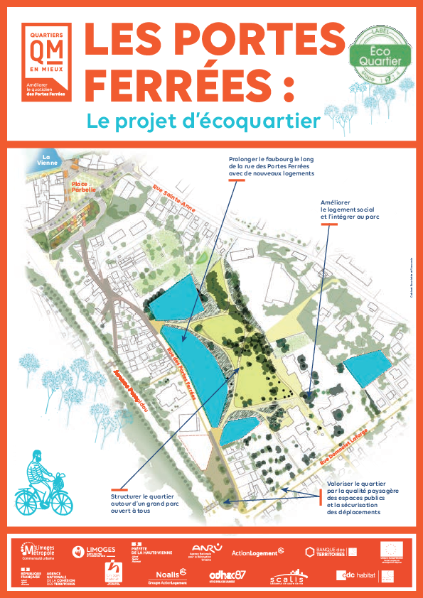 - Pour le projet de renouvellement urbain des Portes Ferrées, c’est la Ville de Limoges qui a initié la démarche - label étape 1 "Ecoquartier en projet" - obtenu en 2018). Depuis 2021, Limoges Métropole poursuit sa coordination en tant que pilote du NPNRU.